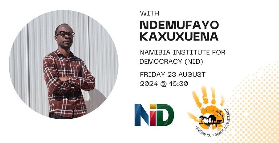 On the 23rd of August 2024, the Namibian Youth Chamber of Environment (NYCE) hosted a webinar on Civic Education and Advocacy to encourage young people to influence Namibia’s policies and plans related to sustainable development. Our invited guest, Mr Ndemufayo Kaxuxuena of the Namibia Institute of Democracy (NID), is an expert on civic education in Namibia and therefore the ideal person to address this topic. The meeting was once again facilitated by NYCE’s president Mr Punaete Kandjii.
